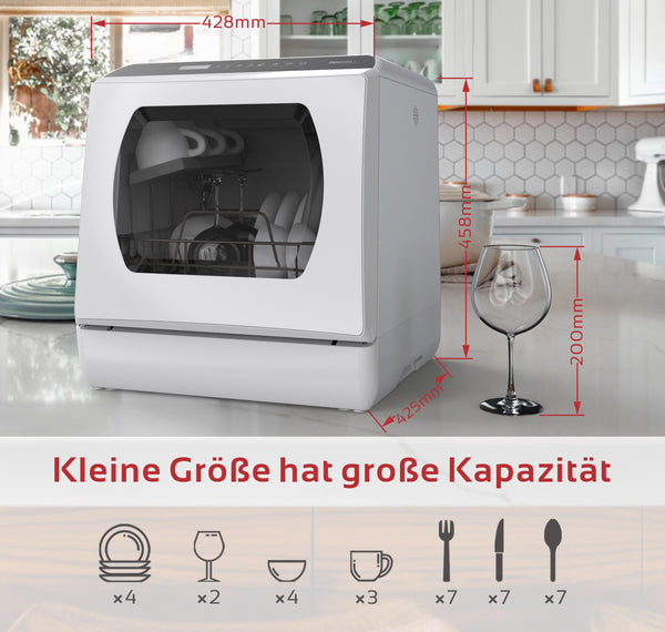 Hermitlux Countertop Dishwasher can hold 4 sets of tableware. The dimensions of the inner compartment are